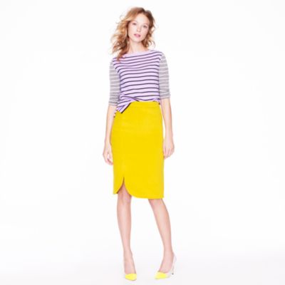 The pencil skirt is part of the Travel Tailoring collection. Crafted from natural memory fabric, the skirt is designed to flex with the movement of the body while retaining a refined silhouette.